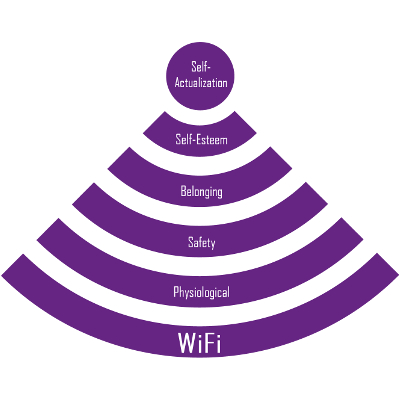 In 1943, psychologist Abraham Maslow published a paper about human motivation that would become the well-known Maslow's Hierarchy of Needs. His theory states that before self-actualization can be achieved, four needs must first be met, like esteem, belonging, safety, and physiological (the most basic which includes, air, food, water, etc.). In 2014, we feel the need to add one more layer to Maslow's pyramid: WiFi.