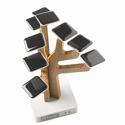 - Suntree - A great addition to any desk, the Suntree features nine solar panels at the end of nine wood "branches." The Suntree model comes with a 1,350 mAh battery.